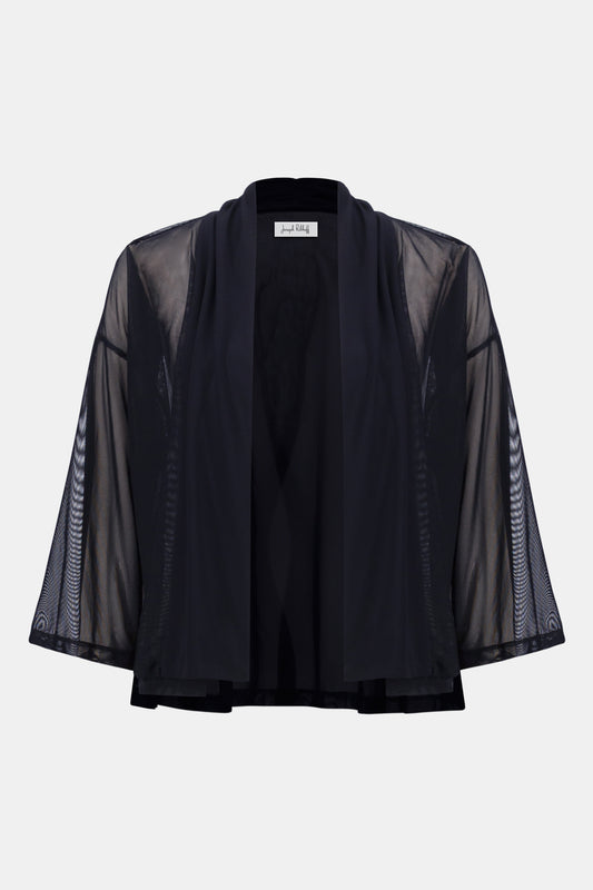 Mesh and Silky Knit Draped Open Front Cover-Up