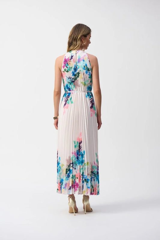 Pleated Satin Floral Print Maxi Dress