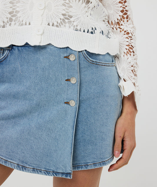 Assymetric Jean Skort Stretch